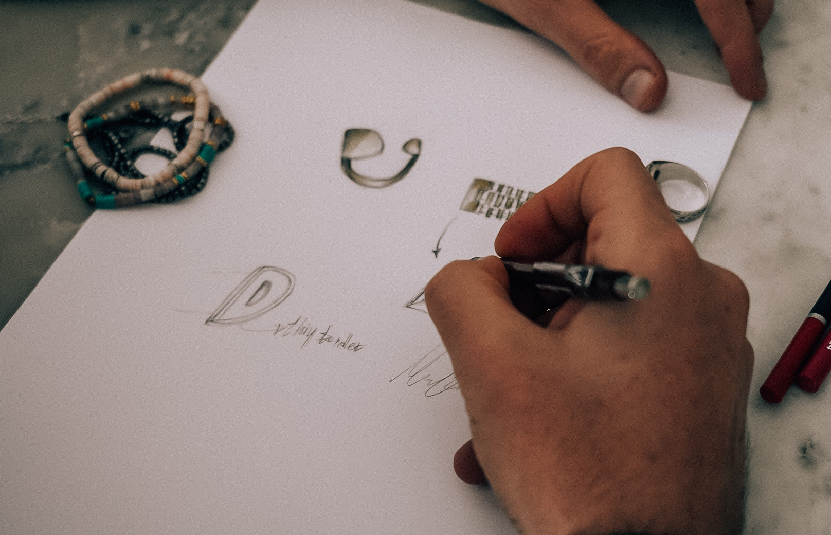 My design process is very organic and every piece comes to life little by little. Starting from the sketch board with an abstract idea it is where I have the opportunity to have some fun by testing different things. It will start from a doodle and through time it will develop to a solid and clear image of a piece.